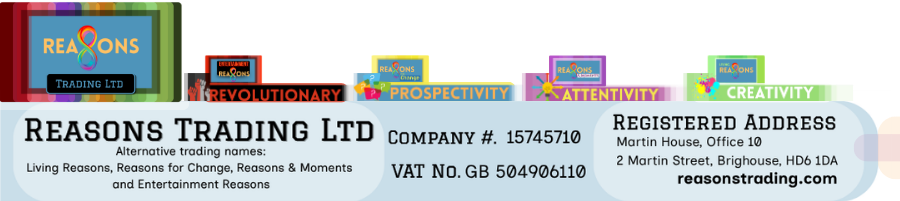 Colorful 3D text that says 'REASONS' with a ribbon in the shape of an 8, with small text underneath that says 'TRADING LTD'.
